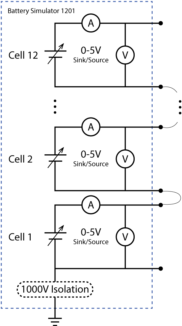 Battery Simulator 1201 Series 12 Cell Layout Functional Diagram